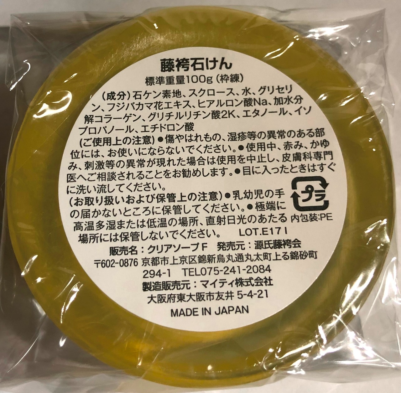 (成分)石ケン素地、スクロース、水、グリセリン、フジバカマ花エキス、ヒアルロン酸Na、加水分解コラーゲン、グリチルリチン酸2K、エタノール、イソプロパノール、エチドロン酸